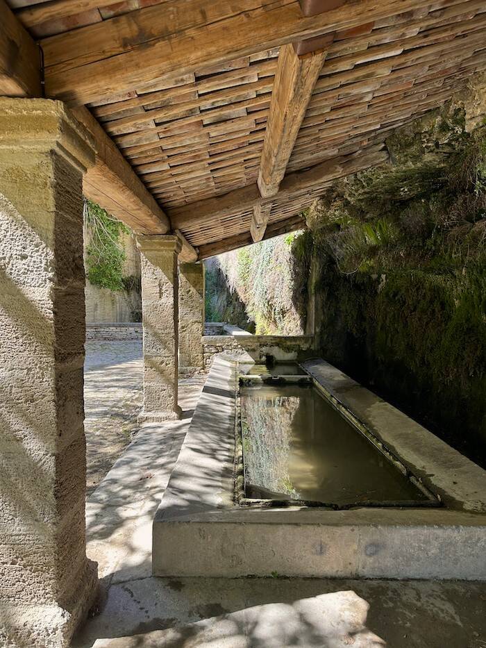 Kom terug op je passen en sla het straatje in net achter de kerk. Het leidt naar een minder drukke plek van Gordes. Je wandelt langs de Aumonerie St Jacques, voorheen een herberg voor pelgrims op weg naar Santiago de Compostella. De steile geplaveide straatjes van Gordes-zogenaamde pas d’ânes- zijn typisch voor de regio. De treden in het midden werden op maat van de ezelspas gemaakt, terwijl de wielen aan de zijkanten konden rollen en goederen zo hun weg vonden naar het hoger gelegen dorpsdeel.